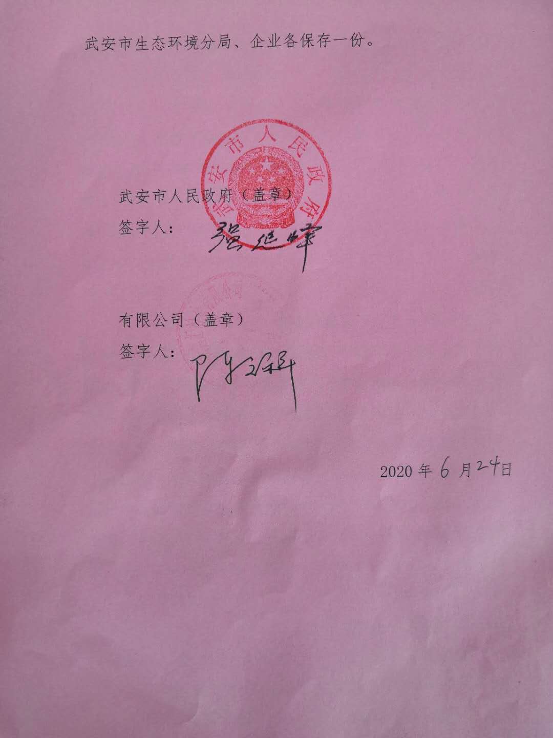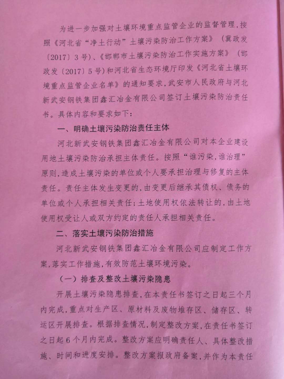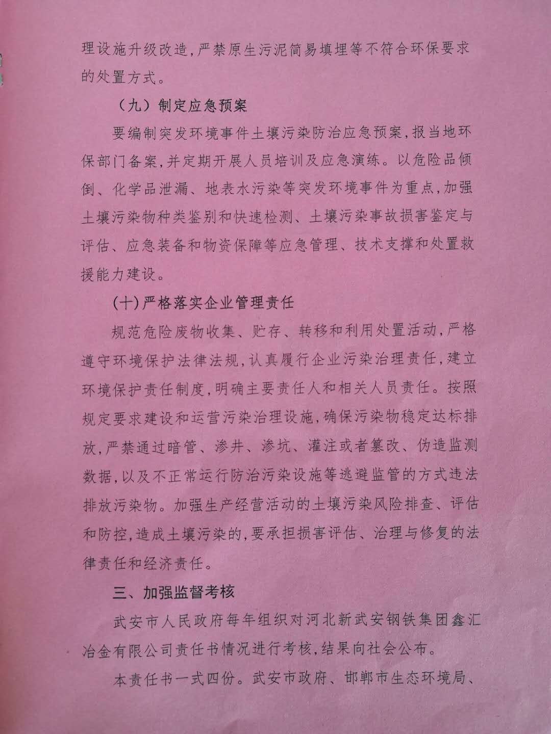 武安市人民政府土壤環境重點監管企業污染防治責任書